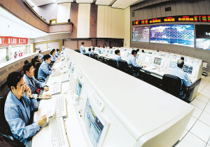 “飛船正常入軌”、“太陽帆板展開”、“航天員狀況良好”、“飛船開始返回”……一個(gè)個(gè)振奮人心的消息傳向世界。這里是中國載人航天測(cè)控網(wǎng)的指揮控制中心,從布陣三大洋的4艘“遠(yuǎn)望”號(hào)航天遠(yuǎn)洋測(cè)量船到遍布在全國各地的陸地測(cè)控站,數(shù)以億計(jì)的測(cè)量控制數(shù)據(jù)在這里交匯,又由這里將數(shù)以千計(jì)的指令發(fā)向太空,牽引著楊利偉和“神舟”五號(hào)飛船完成這一永載中華民族史冊(cè)的莊嚴(yán)飛行。