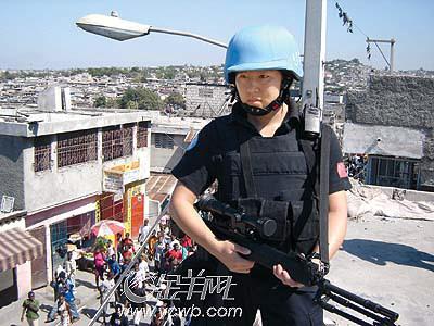【新聞提示:去年9月,應(yīng)聯(lián)合國請求,中國政府首次派遣防暴警察開赴海地執(zhí)行維和任務(wù)。這125位優(yōu)秀中華兒女中,就有13朵警花。在海地承擔(dān)維和任務(wù)的張振貴,赴海地前是廣州市公安局東山分局副局長,還曾做過廣州申亞的陳述人。在六個(gè)月的維和任務(wù)即將結(jié)束之際,恰逢“三八”婦女節(jié),他披露了這13朵警花在海地的點(diǎn)滴故事!