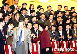 三月二十八日,二零零四年度長江學者特聘教授、講座教授受聘儀式在人民大會堂隆重舉辦。一九九八年八月,“長江學者獎勵計劃”啟動,長江學者已經(jīng)成為中國教育科技界高層次人才的品牌,是高?蒲泻徒逃齽(chuàng)新的領頭人。國務委員陳至立和著名科學家、諾貝爾獎得主楊振寧等出席了二零零四年度長江學者特聘教授、講座教授受聘儀式。作者:張勤
