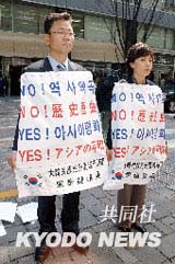 韓國市議員抗議日本通過歪曲歷史的教科書(圖)