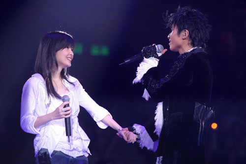 中新網(wǎng)4月8日電 據(jù)香港《大公報(bào)》報(bào)道,古巨基演唱會(huì)前晚于紅館揭幕,當(dāng)晚最難得就是“基仔”請(qǐng)來好友周慧敏(vivain)助陣。vivain最初只是座上客,沒想到“基仔”借助觀眾的威力把她拉出場(chǎng),二人合唱一曲《流言》,贏盡觀眾掌聲。