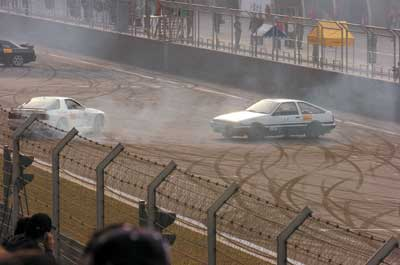 幾萬(wàn)名觀眾觀看了《頭文字D》電影中的飄移比賽,在電影中使用的四輛賽車AE86、EVO、FC、GTR專門從香港運(yùn)送過(guò)來(lái),四輛賽車在跑道中呼嘯著做各種轉(zhuǎn)彎和飄移的動(dòng)作,隨著一道道青煙的升起,全場(chǎng)立即沸騰起來(lái)。