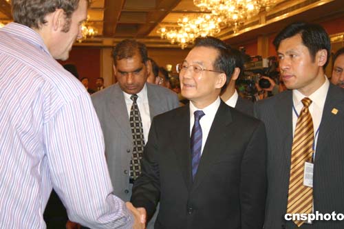 一進(jìn)入會場,溫家寶逐一與各媒體人士握手。他說,“我是用笑臉來歡迎各位記者的,我確實很高興”。他借用印度前總理尼赫魯?shù)囊欢卧挘笆澜绲木掭,周而?fù)始,印度與中國彼此互相瞻望,……帶著歡欣友好的使命,正在創(chuàng)造著新的持久友誼”,來表達(dá)南亞之行即將結(jié)束時的心情。