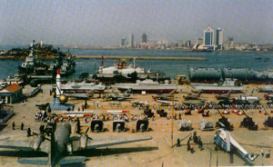 海上展艦區(qū)設(shè)在小青島連陸大堤的海灣內(nèi),那里停泊著退役的“長(zhǎng)城號(hào)”潛艇、“鞍山號(hào)”導(dǎo)彈驅(qū)逐艦和“鷹潭號(hào)”航空導(dǎo)彈護(hù)衛(wèi)艦。鷹潭艦是我國(guó)第一代053K型艦對(duì)空導(dǎo)彈護(hù)衛(wèi)艦;鞍山艦是1954年我國(guó)從前蘇聯(lián)購(gòu)進(jìn)的第一批驅(qū)逐艦,此艦有著不平凡的經(jīng)歷,1936年建成,1941年編入蘇海軍太平洋艦隊(duì),在第二次世界大戰(zhàn)中立下過赫赫戰(zhàn)功。
