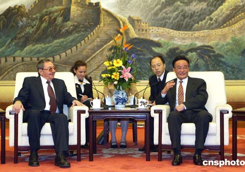 四月十九日,全國人大常委會委員長吳邦國在北京會見了古巴共產(chǎn)黨中央第二書記、國務(wù)委員會第一副主席兼部長會議第一副主席勞爾·卡斯特羅。作者:廖文靜