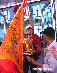 十九日上午十一時(shí)許,“東方之星”客輪緩緩駛進(jìn)福建莆田湄洲島客運(yùn)港,來(lái)自金門的三百余名媽祖信眾組團(tuán)直航湄洲祭拜媽祖,參加將于二十日舉行的金門天后宮媽祖會(huì)接受湄洲媽祖祖廟董事會(huì)贈(zèng)送媽祖石雕像儀式。作者:黃翔