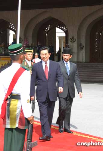 圖:文萊王宮舉行儀式歡迎胡錦濤來訪