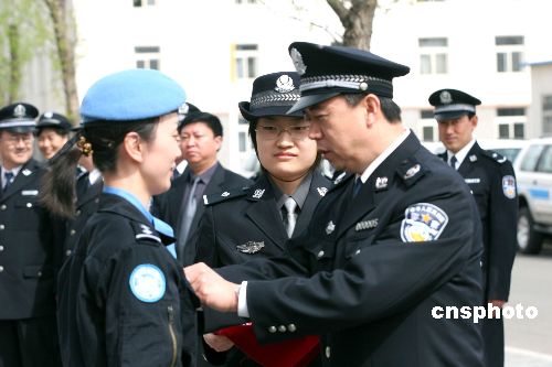 中新網(wǎng)4月21日電 據(jù)人民公安報(bào)消息,公安部日前在河北廊坊中國(guó)維和民事警察培訓(xùn)中心舉行儀式,為首批赴海地維和警察防暴隊(duì)120名隊(duì)員頒發(fā)中國(guó)維和警察榮譽(yù)章。這是公安部首次向維和警察頒發(fā)榮譽(yù)章。