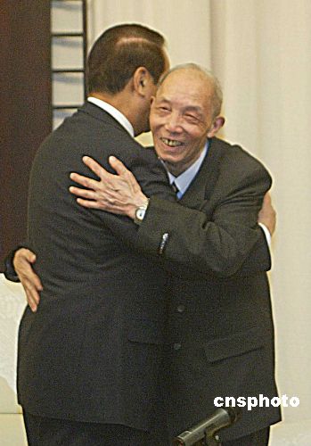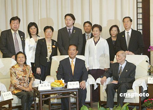 返鄉(xiāng)祭祖的宋楚瑜及家人9日中午在湘潭盤龍山莊與大陸親屬會面。分隔56年的親人一朝相見,不少人都當場流下了熱淚。