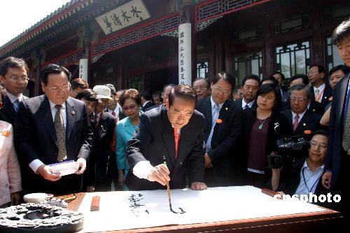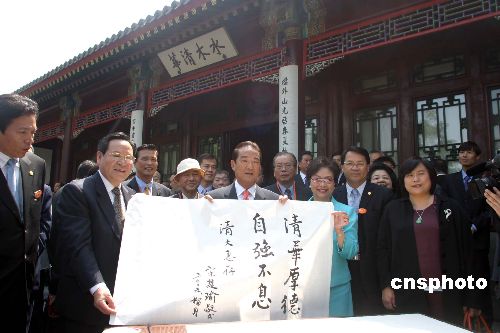 五月十一日上午,親民黨主席宋楚瑜在清華大學(xué)發(fā)表演講,演講結(jié)束后,親民黨主席宋楚瑜率親民黨大陸訪問團清華大學(xué)的主要景點和經(jīng)典建筑并題寫“清華厚德自強不息”。作者:張勤