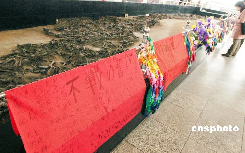 在遼寧撫順“平頂山慘案紀(jì)念館”內(nèi),許許多多來自日本的和平與正義人士在遇難者遺骸的四周懸掛紙鶴,表示哀悼。據(jù)介紹,三十多年來,已有數(shù)十萬日本人到撫順參觀“平頂山慘案”遺址紀(jì)念館,每一位目睹“慘案遺址”的參觀者,面對(duì)累累白骨,無不為當(dāng)年日軍的殘暴所震驚。作者:王麗南