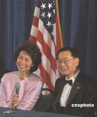 當(dāng)?shù)貢r(shí)間五月十四日,二00五年度美國愛利斯島移民榮譽(yù)獎(jiǎng)?lì)C獎(jiǎng)典禮隆重舉行。美國勞工部部長趙小蘭和父親趙錫成—美國福貿(mào)(航運(yùn))集團(tuán)董事長、著名偵探李昌鈺、美國華人進(jìn)口貿(mào)易協(xié)會(huì)主席蘇夢娜、大紐約小商家聯(lián)盟主席謝美琳等五位華人榜上有名。圖為趙家父女一同接受記者采訪。作者:譚宏偉
