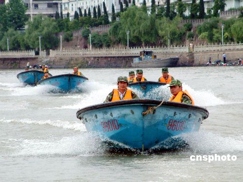 隨著錢塘江支流--蘭江進(jìn)入了主汛期,5月17日下午,浙江省蘭溪市2005年水上堤防抗洪搶險(xiǎn)演習(xí)在蘭江馬公嘴城防大堤上舉行。100余名防汛機(jī)動(dòng)搶險(xiǎn)隊(duì)員進(jìn)行了滑坡?lián)岆U(xiǎn)和水上救護(hù)模擬險(xiǎn)情演習(xí),從而檢驗(yàn)了防汛預(yù)警機(jī)制的有效性。作者:胡肖飛