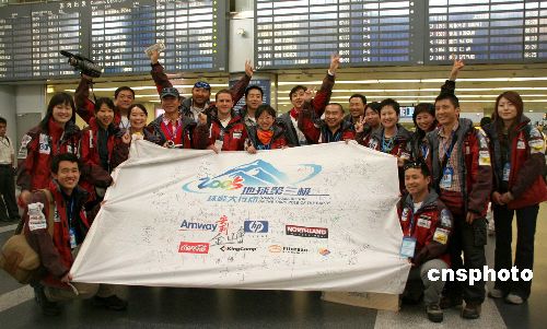 “2005地球第三極珠峰大行動(dòng)”五月二十日從北京啟程。三十三名志愿者從首都機(jī)場(chǎng)出發(fā)前往西藏拉薩,他們將和西藏登山隊(duì)專業(yè)隊(duì)員、當(dāng)?shù)馗呱絽f(xié)作一起,克服珠峰地區(qū)高寒、狂風(fēng)、缺氧、低壓等惡劣的自然環(huán)境,對(duì)存留在珠穆朗瑪峰海拔5120米大本營(yíng)至海拔8000米之間的登山廢棄物進(jìn)行全面清理。作者:陸媛