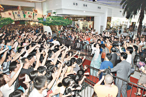 為了一睹大長今真正風(fēng)采,昨早清晨四時(shí)許已有巿民到商場排隊(duì),無線在四十五分鐘內(nèi)已將三百五十個(gè)籌派完,更印制了五千把紙扇派給巿民。答謝會(huì)在下午三時(shí)舉行,愈近舉行時(shí)間巿民愈多,到下午一時(shí),商場甚至封鎖地下至一樓的自動(dòng)電梯及部分出口,防止人流繼續(xù)涌入。到二時(shí)至三時(shí),更是人流的最高峰。為確保李英愛的安全,無線派出了20多名保安,聯(lián)同商場方面的八十名保安,一起在場維持秩序,商場亦同時(shí)知會(huì)荃灣警署,慎防意外發(fā)生。