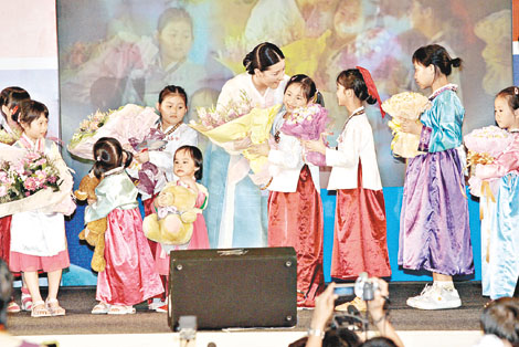 萬眾期待的李英愛,身穿韓服于三時(shí)十五分到場,現(xiàn)場觀眾紛紛站起來,搖著手上的紙扇歡迎她,又以韓文高呼“我愛你”。她走紅地氈進(jìn)場時(shí),除了一直保持笑容,還向觀眾揮手及握手,令觀眾情緒十分高漲。她在后臺(tái)逗留了十分鐘,到三時(shí)廿五分才上臺(tái),即時(shí)以廣東話向現(xiàn)場巿民打招呼:“大家好,你好嗎?我系李英愛!比珗隽r(shí)歡呼,她繼而用韓文道:“多謝大家在這里,希望大家學(xué)大長今的精神,祝大家健康快樂。”她又說好開心跟大家近距離親密接觸,希望大家繼續(xù)愛她支持她,又以廣東話說:“多謝!多謝!”