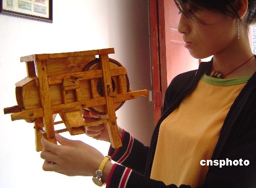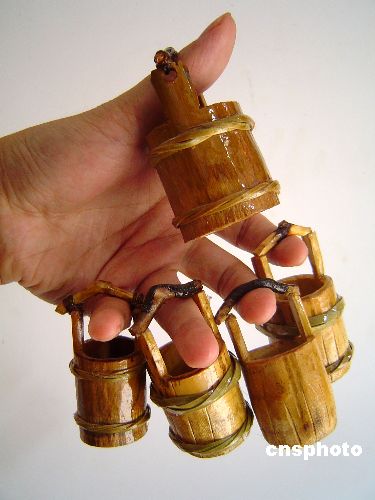 6月1日,重慶市云陽縣農(nóng)民盧炳安開發(fā)出的首批農(nóng)家用具“微縮版”在中國國家風(fēng)景名勝區(qū)張飛廟三國桃園民俗風(fēng)情街正式對(duì)外出售。喜好木工活的盧炳安在農(nóng)閑時(shí)瞄準(zhǔn)“微縮版”農(nóng)家用具的市場(chǎng)前景,組織工匠成立了巴渝鄉(xiāng)戀民俗工藝坊,用上等竹、木精雕細(xì)琢出渝東特色的“微縮版”農(nóng)家用具,投放到張飛廟景區(qū)旅游產(chǎn)品市場(chǎng),像玩具一樣的農(nóng)家用具迅即得到了人們的寵愛。作者:周斌