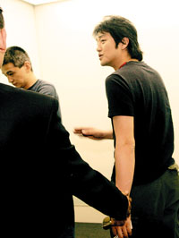發(fā)布會(huì)原定晚上8點(diǎn)半開始,他幾乎踩著點(diǎn)兒到場(chǎng)。他的出現(xiàn)引得眾多攝影記者爭(zhēng)相拍照。一通閃光燈后,不等會(huì)議開始他就坐不住了,起身告退。記者尾隨他到電梯門口,看到鏡頭,李亞鵬的眼光起初有些閃躲,隨即無(wú)奈地正視著記者,神情十分復(fù)雜。