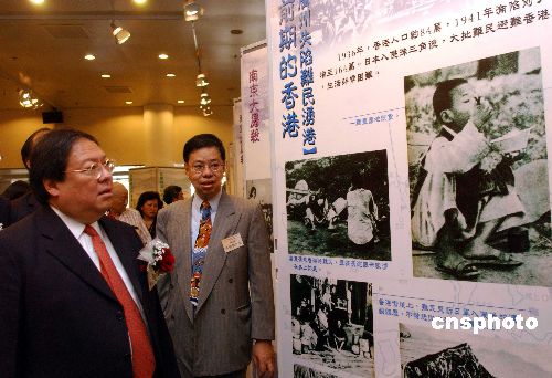 為紀(jì)念抗日戰(zhàn)爭勝利60周年,香港各界紀(jì)念抗戰(zhàn)勝利60周年活動(dòng)籌委會(huì)3日在中央圖書館舉辦《抗戰(zhàn)時(shí)期的香港》圖片展覽。立法會(huì)主席范徐麗泰在開幕儀式上致辭。作者:譚達(dá)明