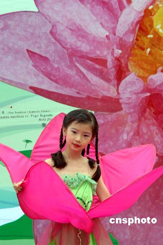 六月四日,“第五屆澳門荷花節(jié)”在“龍環(huán)葡韻”揭幕,千姿百態(tài)的各種荷花吸引?多游人,小朋友在揭幕式上表演助興。作者:梁永強(qiáng)