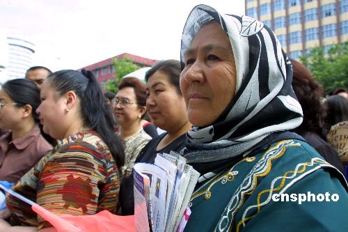 六月七日是全國(guó)普通高校招生考試第一天,在烏魯木齊一民族考點(diǎn)外,一位維吾爾族大娘手持高考招生資料,等待自己的孩子順利完成第一門(mén)考試。據(jù)悉,二零零五年新疆報(bào)考普通高?忌_(dá)十二點(diǎn)八萬(wàn)人,其中少數(shù)民族考生近五萬(wàn)人,再創(chuàng)歷史新高。作者:劉新