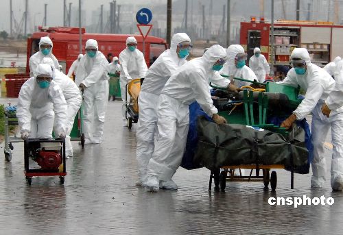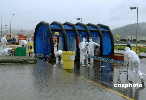 即將啟用的“澳門蛋”--澳門東亞運(yùn)動(dòng)會(huì)體育館,在陣雨的洗禮下顯得格外宏偉。十六日下午三點(diǎn)三十分,隨著一聲清脆的槍響,澳門“金雞--二00五”聯(lián)合反恐演習(xí),在這里拉開序幕。