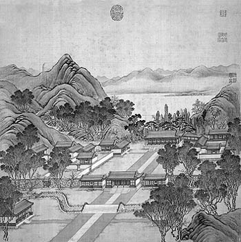 “圓明園四十景圖詠”是乾隆元年1736年,乾隆皇帝令宮廷畫師沈源、唐岱依據(jù)圓明園實(shí)景繪制,由沈源畫房舍,唐岱畫土山樹石。圓明園四十景,是指園內(nèi)獨(dú)成格局的四十處園林景觀,一個(gè)景就是一座“園中園”。當(dāng)時(shí)圓明、長(zhǎng)春、綺春,三園共計(jì)約有百余處景群,但昔日僅繪制此四十景,更突現(xiàn)出此四十景的顯要與華蓋群芳。四十景圖為絹本彩繪,每幅圖的絹心為64×65厘米,連裝池綾邊為83×75厘米,每幅圖配有時(shí)任工部尚書大書法家汪由敦代書的乾隆皇帝“四十景詩”,連同“四十景圖”共計(jì)四十對(duì)幅,每對(duì)幅為左詩右圖。