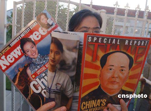 毛澤東波普藝術(shù)畫像出現(xiàn)在今天面市的《時代》周刊封面上,該刊以“中國的新革命”(CHINA`S NEW REVOLUTION)為總題刊載了超過二十多個版位的相關(guān)文章。該組文章以崛起的中國為主線,從中美之間日益緊密的關(guān)系,中國社會的變化,美國大企業(yè)對中國的影響等方面,全面解讀中國的政治、軍事、經(jīng)濟、社會、人權(quán)等方面的情況。本組報道還配以大量的圖表和新聞圖片,展示中國的經(jīng)濟、社會生活的現(xiàn)狀。封面上的毛澤東畫像著中山裝,但衣服上面的隱圖為“路易威登”品牌標識,這個封面的圖案設計顯然畫中有話,體現(xiàn)了作者對當今中國的主觀隱喻。