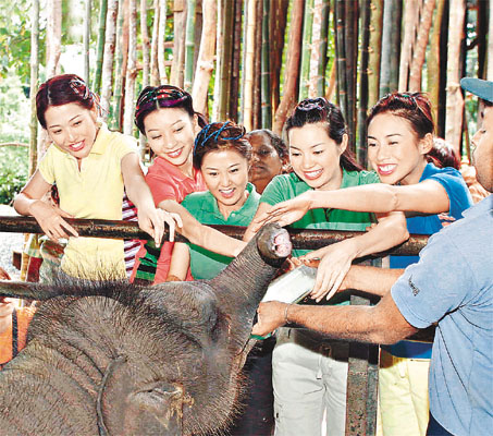 準(zhǔn)港姐于斯里蘭卡的拍攝工作進(jìn)行得如火如荼,昨日佳麗們被安排往探訪“大象孤兒院”。眾佳麗一見大象都表現(xiàn)得十分雀躍,更爭相向大象喂奶,不過鄧上文和大象合照時(shí),竟被大象撩腳,嚇得她馬上彈開。事后鄧上文坦言當(dāng)時(shí)很害怕,因怕大象會(huì)吸走她的鞋。但鄧上文仍然表示這次體驗(yàn)十分有趣。