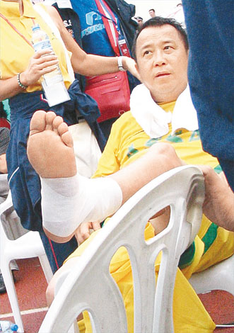 至于張兆輝之受傷經過,據(jù)有份協(xié)辦此次活動的新城娛樂臺臺長朱明銳表示:“張兆輝守球門時,因為奮勇救波,混亂中被對方隊員踢中膝蓋,立即血流如注,好在入院檢查之后無大礙,已經返回酒店休息。”
