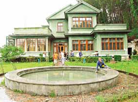 別墅座落在離加格拉市15公里處的霍洛德納亞(俄語中意為“寒冷”)河畔,是上個世紀(jì)30年代斯大林親自下令建成的。周圍青松掩映,從海上都無法發(fā)現(xiàn)其蹤影:當(dāng)時的斯大林身為蘇聯(lián)最高統(tǒng)帥,為了個人的安全可謂是處心積慮。雖然住在海邊,但他從不去海里游泳,而是通過專門的管道將海水引入室內(nèi)的游泳池。別墅24小時供應(yīng)冷熱水。