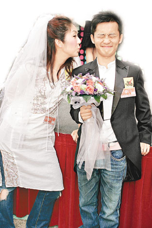 千嬅表示,她對(duì)上一次有結(jié)婚沖動(dòng)是三、四年前見好友結(jié)婚的時(shí)候。照時(shí)間計(jì)算,那時(shí)候正是千嬅與鄭中基拍拖的時(shí)候,記者于是問(wèn)她當(dāng)時(shí)是否正在熱戀?千嬅笑說(shuō):“不提啦,都已經(jīng)過(guò)去!”林一峰則說(shuō),事前是他主動(dòng)要求千嬅拋花球給自己,他表示:“為什么男人不可以接花球,愛情上男女都是平等!彼肿猿半m然穿起新郎西裝但卻像花花公子。