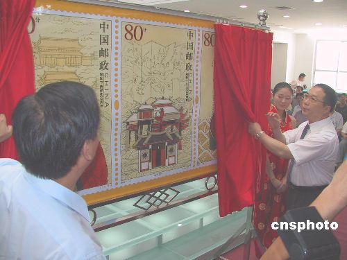 |   六月二十八日,《鄭和下西洋六百周年》紀(jì)念郵票首發(fā)式在福建長樂隆重舉行,該紀(jì)念郵票首發(fā)式共發(fā)行一套包括三枚郵票小版張及一套郵票小型張,其主題是“熱愛祖國、睦鄰友好、科學(xué)航海”。圖為首發(fā)式上國家郵政總局副局長張亞非(圖右)為紀(jì)念郵票揭幕。作者:王東明 |  |  |