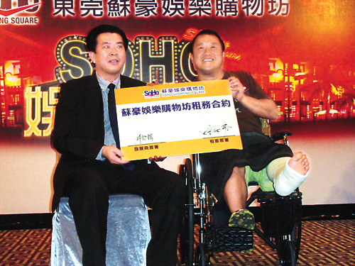 中新網(wǎng)6月29日電 據(jù)香港媒體報道,曾志偉日前在北京參加一場足球賽時受傷,左腳腳筋折斷。昨日終于返港出席“東莞蘇豪娛樂購物坊”的記者會,由于在購物坊中“飲食獎門人”街區(qū),志偉亦是投資者之一,故他雖然要坐著輪椅,左腳打了石膏,但都堅持出席,而他的傷勢要半年才可完全康復(fù)。