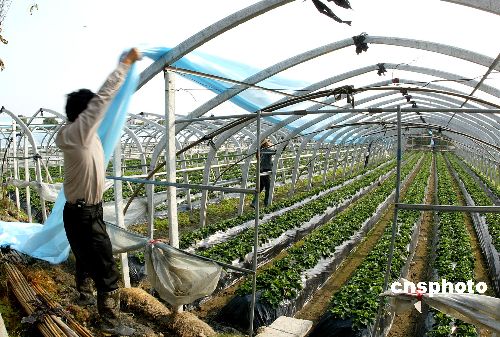 2005年6月29日,據(jù)財政部部長金人慶近日披露,到目前為止,已經(jīng)明確免征農(nóng)業(yè)稅的省份新增山西、內(nèi)蒙古等19個,加上去年已經(jīng)免征和基本免征農(nóng)業(yè)稅的8個省份,2005年可提前實現(xiàn)免征農(nóng)業(yè)稅的省份將達到27個,其余的河北、山東、廣西、云南4省(區(qū))2005年有217個縣(市)也將免征農(nóng)業(yè)稅。今年享受免征農(nóng)業(yè)稅的農(nóng)民將達到8億人。圖為寧波農(nóng)村一蔬菜專業(yè)戶正在為大棚更換農(nóng)膜。作者:張和平
