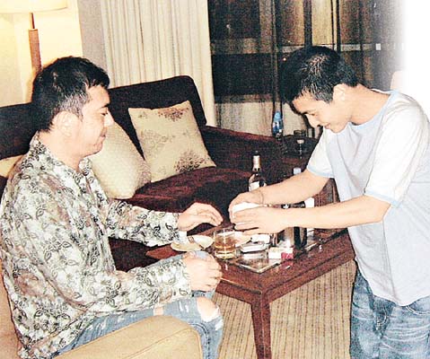 早前他們?cè)谛录悠聻殡娪靶麄鲿r(shí),秋生先跟Edison上契,二人在酒店房進(jìn)行上契儀式,Edison跟足傳統(tǒng)儀式向契爺跪地斟茶,秋生隨即封了幾千元的紅包給義子,然后用手按著他的頭,贈(zèng)義子一句:“以后要乖乖地!”