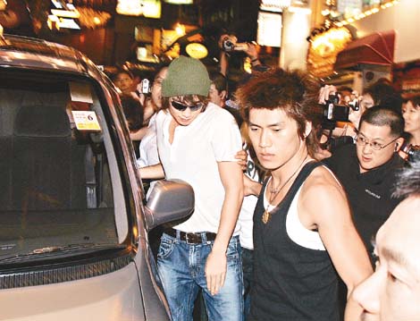 Rain千方百計(jì)留港,看來他對這幾天的行程實(shí)在稱心滿意。前晚他完成在愉景新城的活動(dòng)后先返酒店,直至十時(shí)他換了便服,在酷熱下戴上綠冷帽出擊夜店,出席蘭桂坊的夜店C Club為他預(yù)備的私人派對。Rain的保母車因不熟路停在另一邊,Rain需下車走一段路,沿途當(dāng)然引起哄動(dòng)。