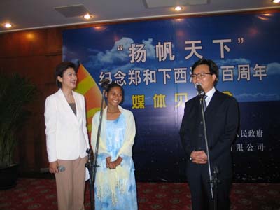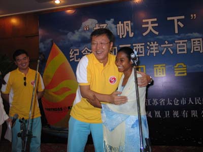 去年8月8日,由鳳凰衛(wèi)視的四位隊員駕駛的鳳凰號單桅帆船啟程,沿著鄭和寶船的路線去探尋鄭和的足跡。他們于今年3月16日抵達鄭和船隊的終點—肯尼亞,并在當(dāng)?shù)氐奶皆L中,發(fā)現(xiàn)了鄭和船隊水手的后裔、18歲的烏瓦瑪卡•沙里夫,并對她的家庭進行了追訪和報道。