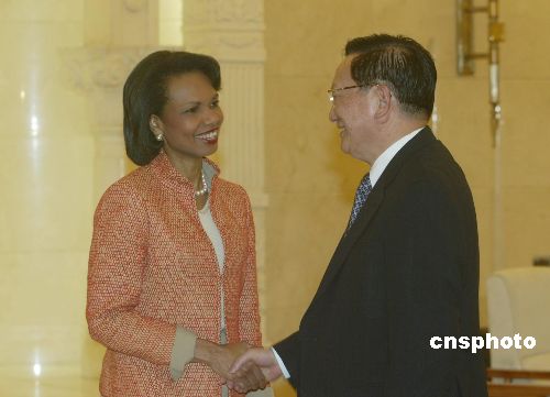 圖:唐家璇會(huì)見(jiàn)美國(guó)國(guó)務(wù)卿賴斯