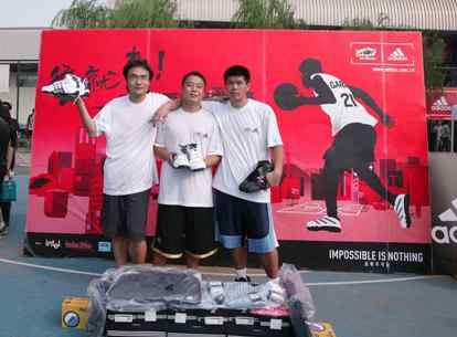 中新網(wǎng)7月25日電 7月24日下午,北京奧體中心室外籃球場,2005阿迪達(dá)斯街球營第一周北京地區(qū)周冠軍新鮮出爐!鞍雵崱标(duì)以2380的周積分贏得了這一榮譽(yù),并獲得價(jià)值10,000元人民幣的阿迪達(dá)斯運(yùn)動(dòng)裝備。更令人羨慕的是,該隊(duì)將與第二、第三周的周冠軍一起,爭奪街球營唯一的“麥蒂隊(duì)”資格。而最后的勝出者,將于代表北京街球少年,與8月底來訪北京的麥蒂進(jìn)行面對面的對抗。