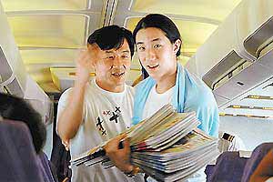 中新網(wǎng)8月2日電 據(jù)新明日?qǐng)?bào)報(bào)道,國(guó)際影壇巨星成龍?jiān)诩∑聲r(shí),忍不住大罵兒子房祖名懶散。他受訪(fǎng)時(shí)談起兒子,越說(shuō)越氣,狠批兒子“跑步跑不過(guò)我、打又打不過(guò)我,連舉重也不夠我!彼擦R兒子不愛(ài)運(yùn)動(dòng),每天只顧打電玩、上網(wǎng)、傳簡(jiǎn)訊、吃零食,連坐下來(lái)的姿態(tài)也很慵懶,“真的很令人討厭”!