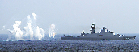 據(jù)報(bào)道,昨天的海空聯(lián)合操演假想解放軍以突擊、封鎖及?展舴绞剑鈭D封鎖臺(tái)左營(yíng)與高雄港,阻斷臺(tái)對(duì)外交通。臺(tái)海軍艦只緊急出港,港內(nèi)部隊(duì)實(shí)施要地防空。此時(shí),模擬解放軍戰(zhàn)機(jī)臨空,臺(tái)軍各艦及港內(nèi)防空飛彈、火炮,皆啟動(dòng)接戰(zhàn)。
