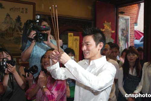 中新網(wǎng)8月5日電 據(jù)香港媒體報(bào)道,劉德華的國(guó)語(yǔ)大碟《再說(shuō)一次我愛(ài)你》昨日全球發(fā)行,他專(zhuān)誠(chéng)到臺(tái)北月老廟拜神,更為歌迷求了過(guò)千條月老紅線,打算于簽名會(huì)時(shí)送給fans。