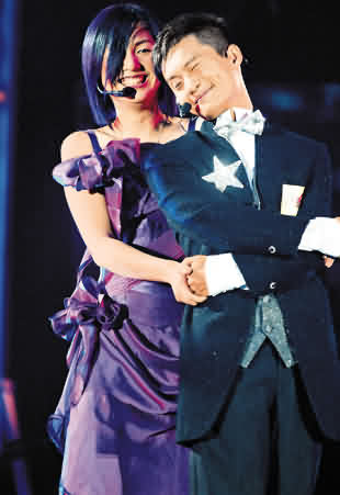 二人合唱《男孩像你》掀起全晚高潮,當(dāng)千嬅唱到“但男孩像你只愛同類嗎”,即指向一峰,引起全場(chǎng)起哄,而一峰亦唱出“男孩像我不想與妹妹拍拖”,最后他們穿上禮服大跳華爾滋。