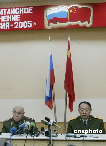 中俄兩國五六十名記者參加了此次記者招待會(huì)。中俄兩軍總參謀長分別介紹了參加“和平使命-2005”中俄聯(lián)合軍事演習(xí)部隊(duì)的基本情況。