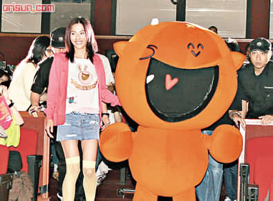柏芝身穿超短牛仔裙襯鮮黃色魚網(wǎng)絲襪拖著基仔“兒子”Kubi入場(chǎng),引來全場(chǎng)起哄,她一上臺(tái)即表示:“我覺得基仔好似蒸餾水、沒雜質(zhì)、好乖,他是寧愿被人傷害都不會(huì)傷害別人 ……不過各位基仔歌迷請(qǐng)放心,我不會(huì)追求他!”主持Vani插嘴:“因?yàn)樗⑽牟缓??芝笑笑口說:“因?yàn)槲蚁矚g外國人!”