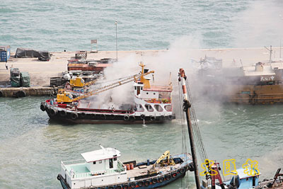 及至周一晨9時許,4人突然發(fā)現(xiàn)船倉冒濃煙,張柏雄一馬當(dāng)先跳入船艙救火,船主張×友則繼續(xù)控制船只,并以手提電話報警求助,由于沒有網(wǎng)絡(luò)關(guān)系,欲救無從、又無法報警,張×友遂將躉船駛往3海里外的西區(qū)貨物起卸區(qū)求救。
