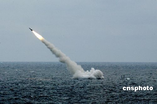 11時(shí)29分,隨著“砰”的一陣悶響,導(dǎo)彈順利發(fā)射出艇。此時(shí),導(dǎo)彈發(fā)射瞬間產(chǎn)生的強(qiáng)大空氣回流,使記者的耳鼓里明顯地感覺(jué)到一股強(qiáng)勁的壓力。