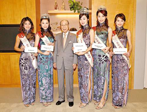 五位出爐港姐日日忙于四處領(lǐng)獎,昨午她們出現(xiàn)電視廣播城接受由電視廣播有限公司行政主席邵逸夫爵士頒發(fā)獎金。邵爵士與眾佳麗言笑晏晏,盡顯親切和藹一面。