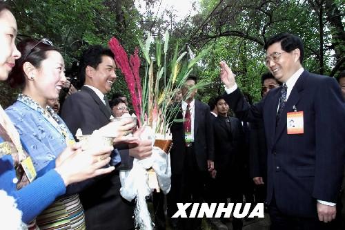 在走過“和平解放”和“民主改革”14年歷程之后,以1965年9月1日西藏自治區(qū)成立為新的歷史起點,西藏人民在中國共產(chǎn)黨的英明決策和正確領(lǐng)導下,走上了光明的發(fā)展大道。西藏自治區(qū)40年輝煌成就的取得,凝聚著以毛澤東、鄧小平、江澤民同志為核心的黨的三代中央領(lǐng)導集體和以胡錦濤同志為總書記的新一屆中央領(lǐng)導集體的心血。
